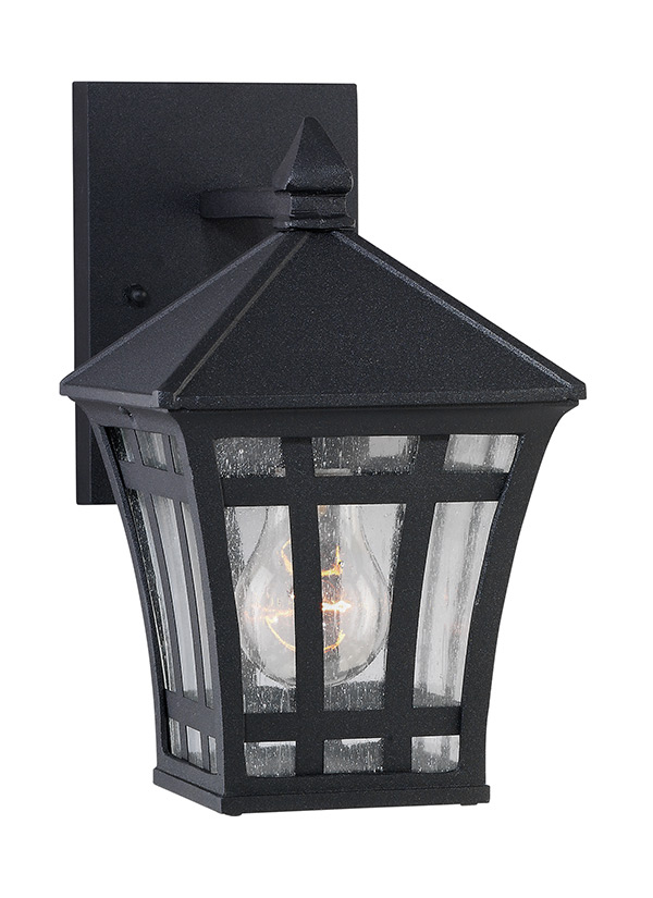 One Light Outdoor Wall Lantern in Black Finish with Clear Seeded Glass. |