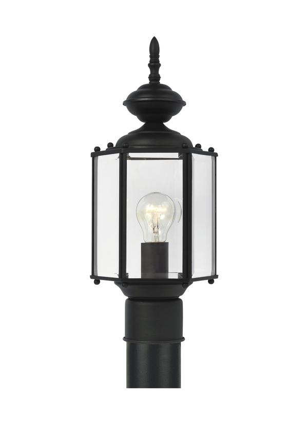 Outdoor post lantern finished in antique brass over solid brass with clear beveled glass. Fits 3" post (sold separately). |