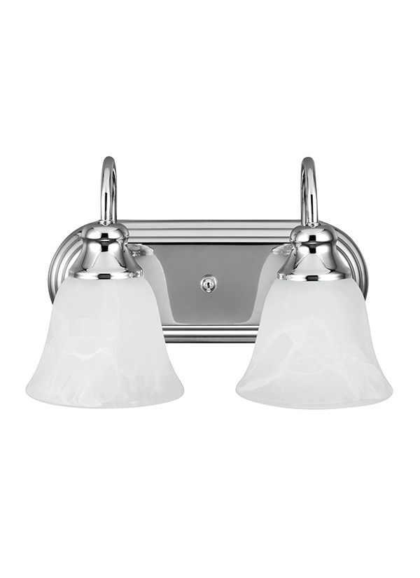 Two Light Wall/Bath in Chrome Finish with Alabaster Glass Shades |