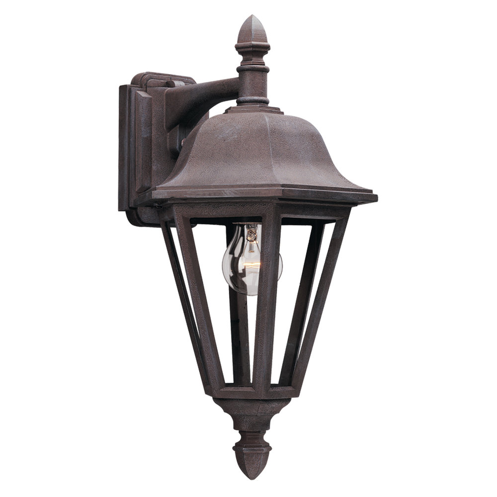 Rugged but decorative cast aluminum. Outdoor wall lantern made with durable Sienna® powdercoat finish over cast aluminum and clear glass. |