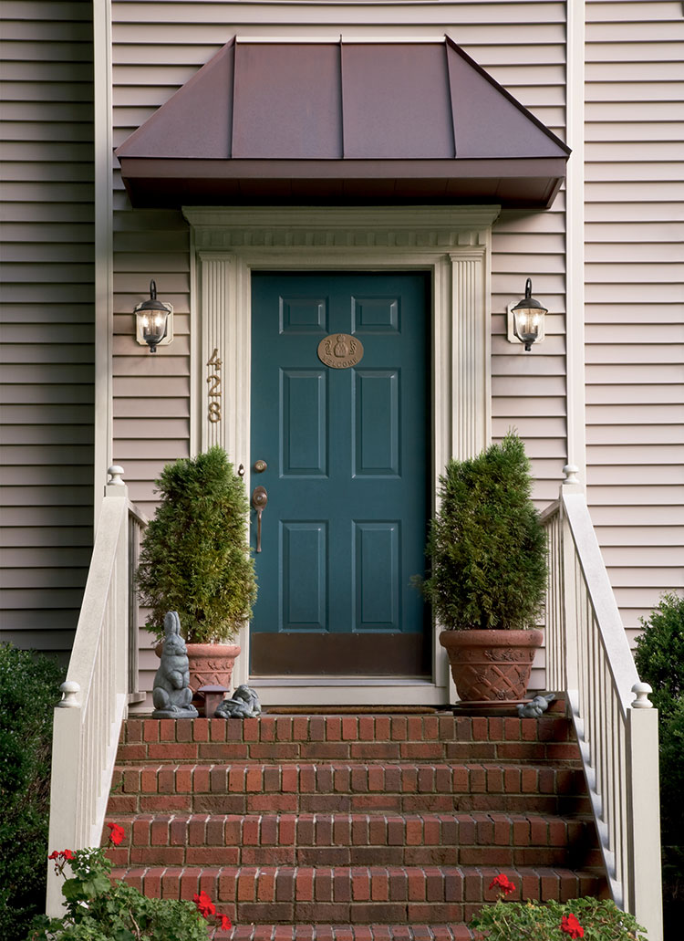 Classic cottage and coach lantern designs are melded into the Trafalgar outdoor lighting series for an impactful presentation.