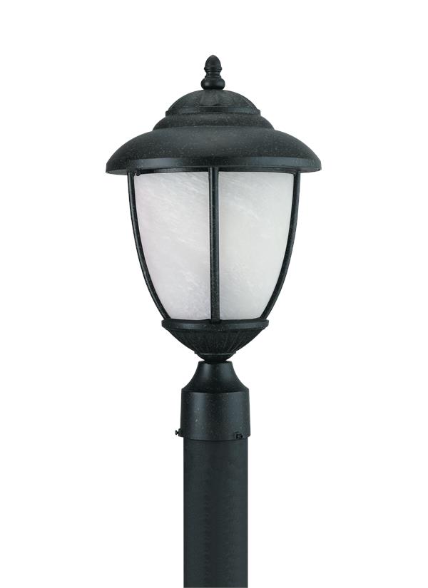 One Light Outdoor LED Post Fixture in Forged Iron Finish with Swirled Marblelized Glass |