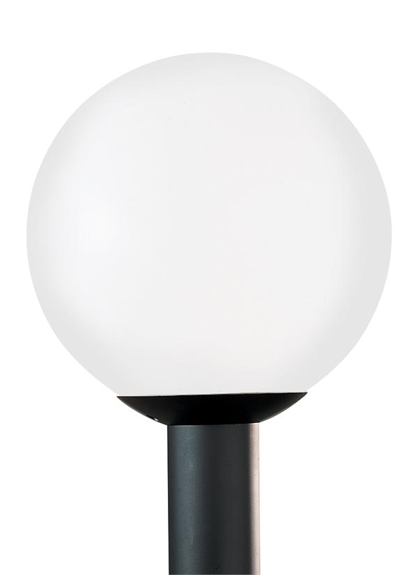 Outdoor lantern top with black finish and white acrylic ball diffuser. Fits 3" Outdoor Post (Sold Separately). |