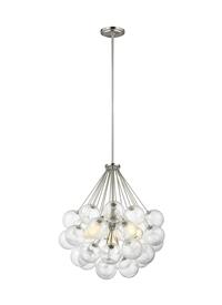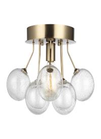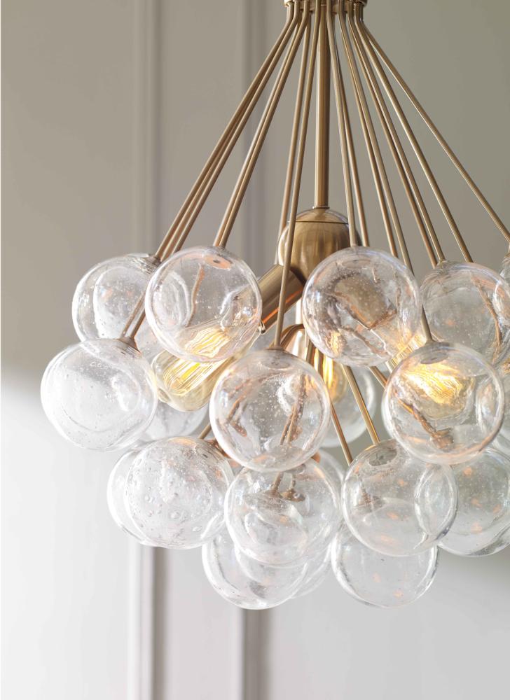 Bronzeville brings a daring, upscale element of mid-century modern design to any space. Hand blown, Seeded Glass globes encircle warm, glowing, filament lamps, diffusing the light to create a serene ambiance of light and shadow. Available in two finishes.