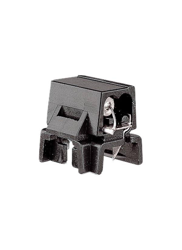 Polycarbonate fused plug with corrosion resistant contacts. Snaps onto Lx cable and 9435 track or 9443 track/fascia for electrical connection to fixture. Insert 18/2 SPT-1 or equal size cord into plug and press in contacts. For use when installing fixtures with 18/2 AWG cord on Class I system. Maximum wattage after fuse, 60w at 12v or 100w at 24v. UL and C-UL listed. |