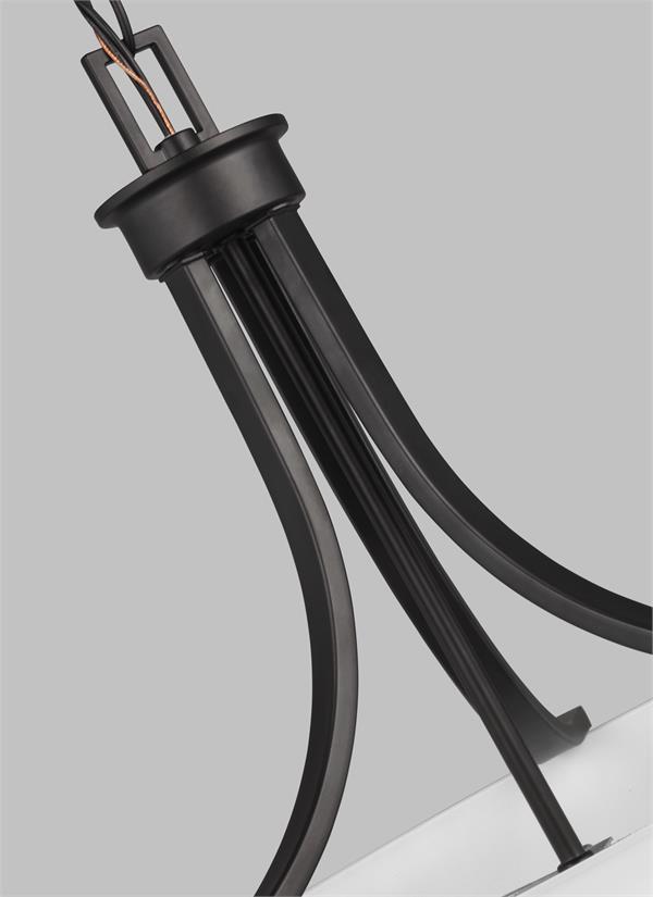 Satin-Etched shades perched along a sleek, circular fixture in three finishes.
