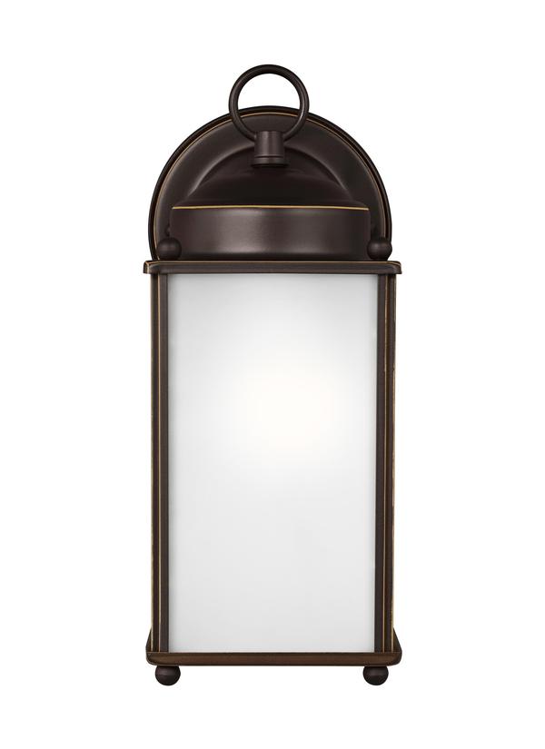 Simple Details Create Stylish Outdoor Wall Lantern. Antique Bronze Finish and Satin Etched Glass. |