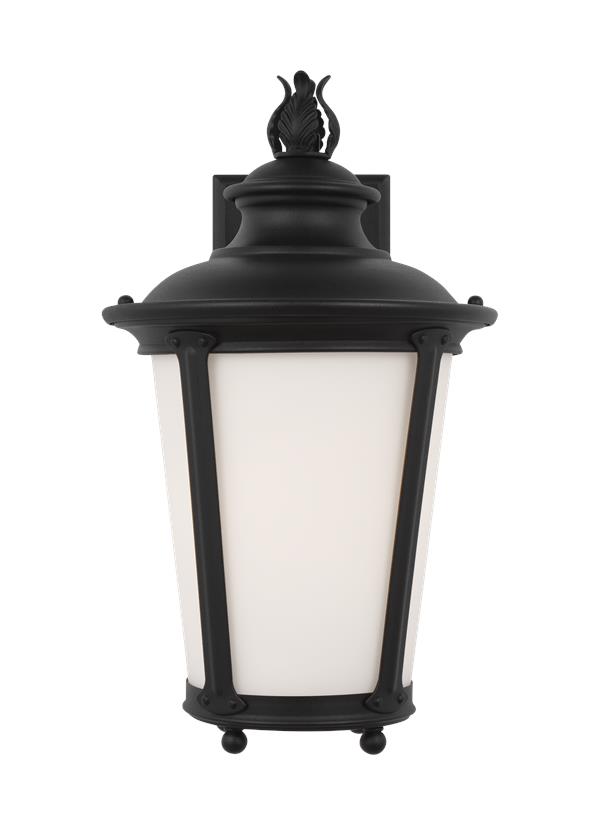 Medium One Light LED Outdoor Wall Lantern in Black Finish with Etched / White Inside Glass Shade |