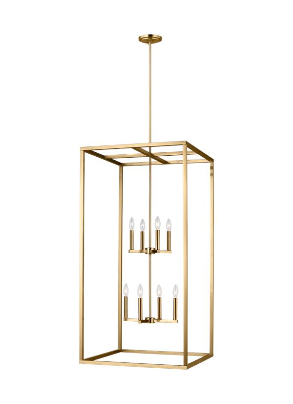The Sea Gull Collection Moffet Street eight light indoor pendant in Satin Brass offers a distinctive take on a rustic theme. Built in broad steel frames with hand-applied finish that mimics natural wood. This combination of rustic and urban fits comfortably in a wide variety of environments. The sharp, squared lines of the frame complement a wide variety of settings. The collection includes eight-light foyer, four-light foyer, one- light wall sconce, and a six-light island fixture. The Moffet Street Collection is available in three beautiful finishes Washed Pine, Brushed Nickel and Satin Brass All fixtures are California Title 24 compliant and damp rated for use in sheltered, damp environments. |