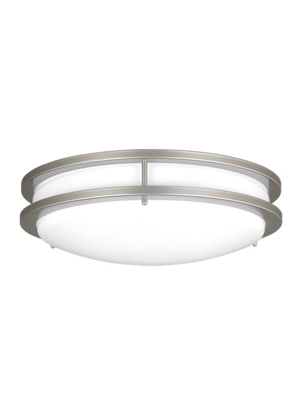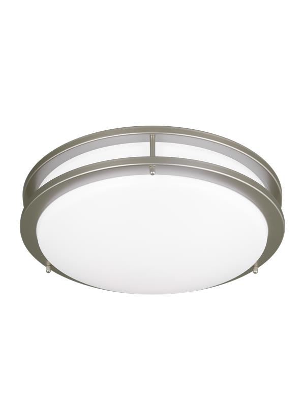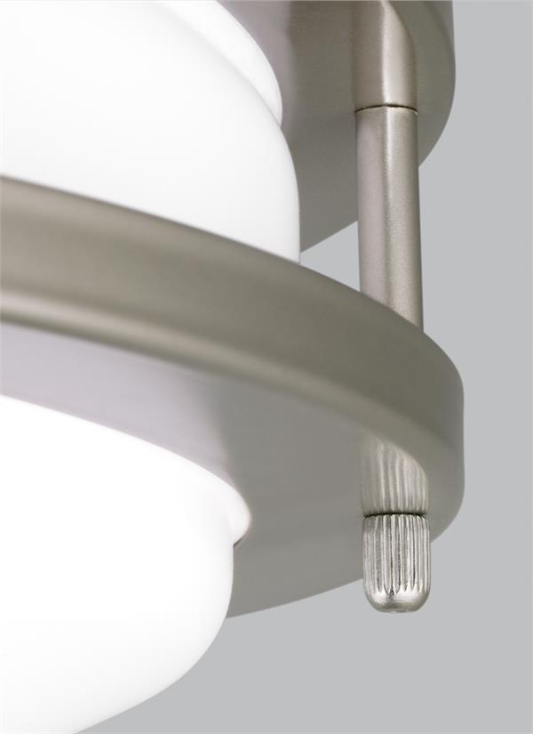 Round canopy design with steel frame and white acrylic diffuser offers a simple and transitional style