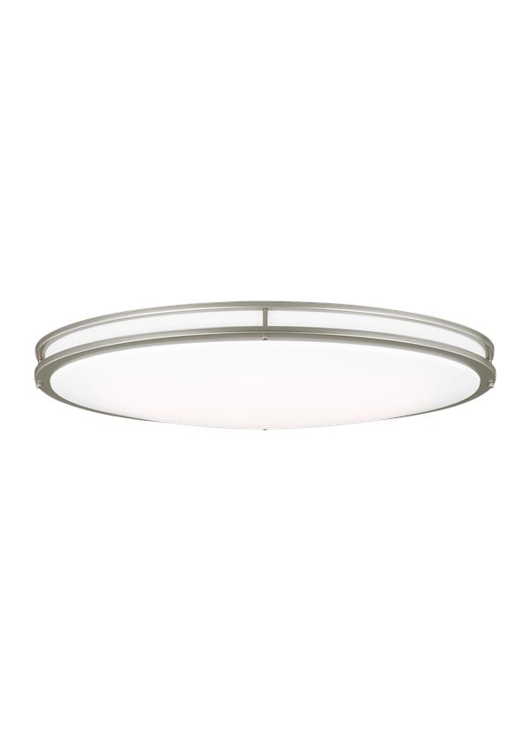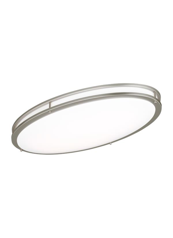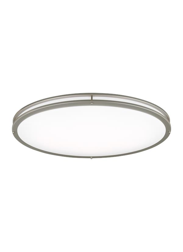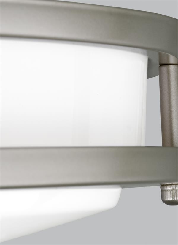 Round canopy design with steel frame and white acrylic diffuser offers a simple and transitional style
