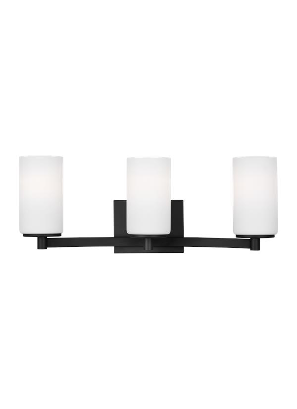 The Sea Gull Lighting Hettinger three light vanity fixture in Midnight Black provides abundant light for your bath vanity, while adding a layer of today's style to your interior design. The Hettinger lighting collection by Sea Gull Lighting combines a traditional look with chic, modern charm. The minimalism of the tubular glass shades balances with the unique, outward-curve of the semi-circular arm detail. Hettinger is available in three finishes - Bronze and Brushed Nickel for the whole collection, and Chrome, Midnight Black and Satin Brass for the bath vanities. The assortment includes six- and nine-light chandeliers; a one-light wall sconce; two-, three- and four-light bath vanity fixtures; a three-light pendant and two- light semi-flush convertible pendant. Incandescent and ENERGY STAR-qualified LED lamping are available; all fixtures are California Title 24 compliant. |