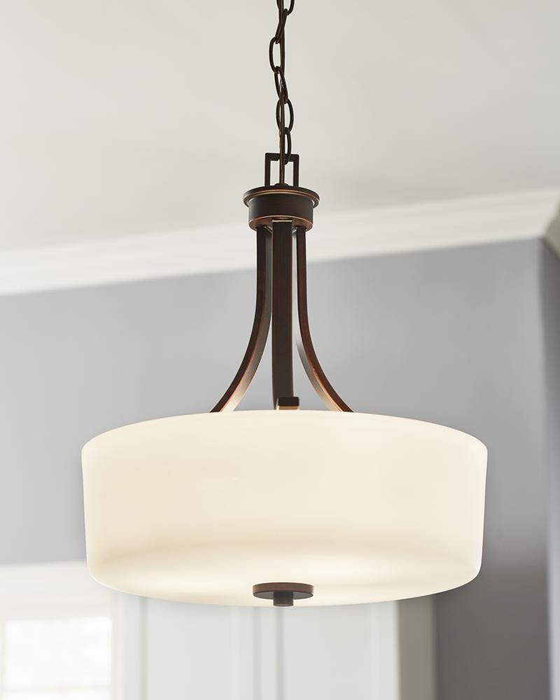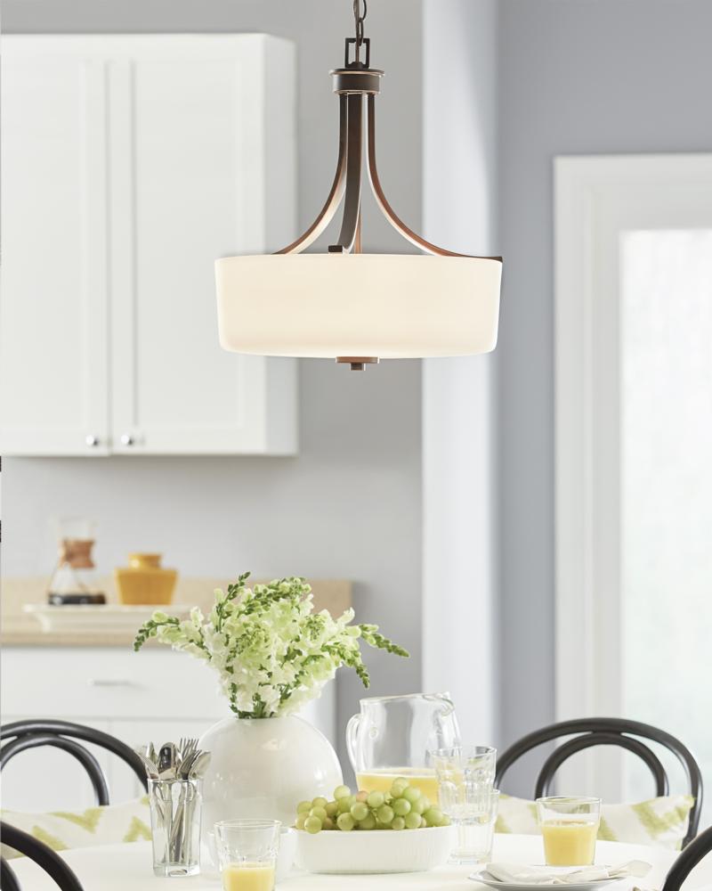 Round shape offers a functional modern style and white etched glass craftsman designed diffusors for adjustable lighting levels