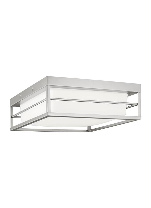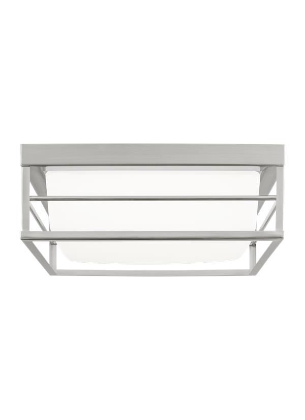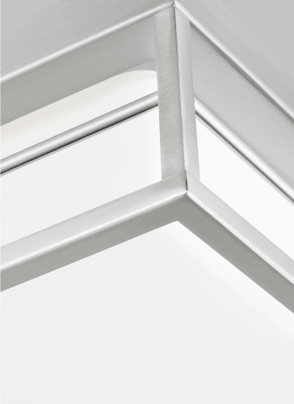 Dearborn is a universal flush mount, with contemporary angles and open cage frame.