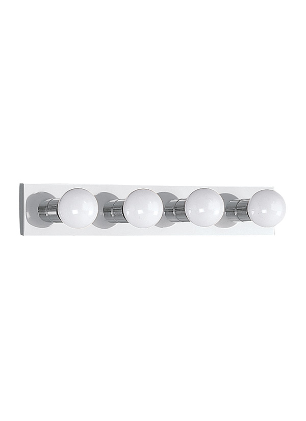 Four-bulb bar light fixture with chrome finish. Sockets spaced on 6" centers. |