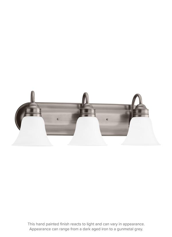 Three Light Bath Bar in Antique Brushed Nickel Finish with Satin Etched Glass Shade |