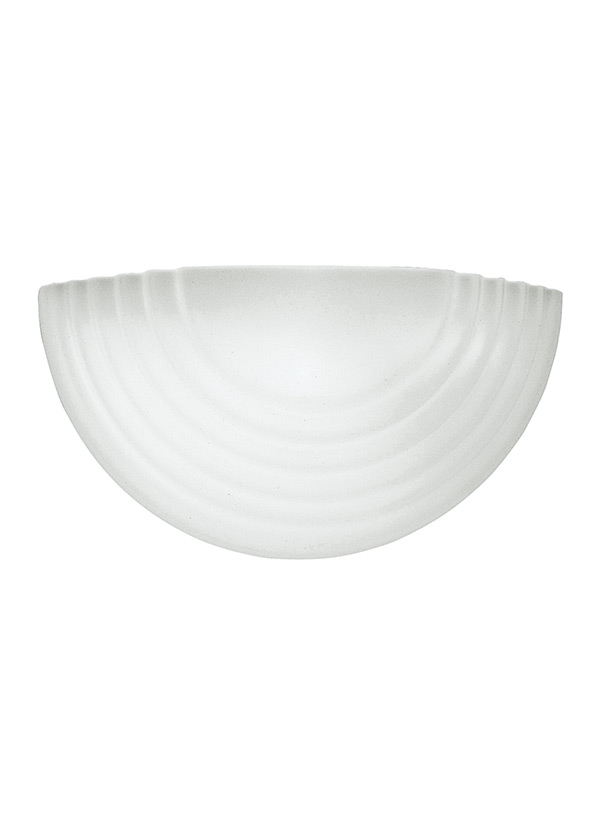 Wall or bath fixture for any room comes in white finish and glass with etched curves for style. |