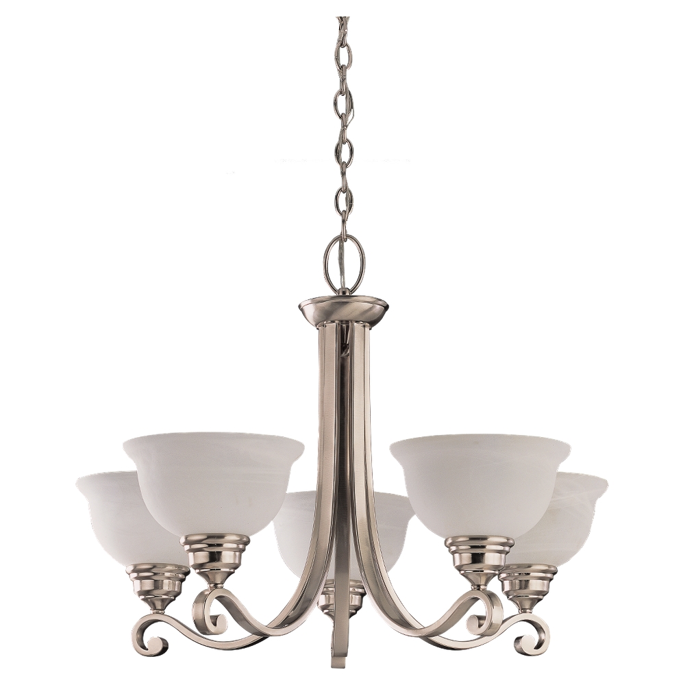 Five Light Fluorescent Chandelier in Brushed Nickel Finish with Excavated Alabaster Glass Shades. Energy Star Compliant Bulb Included. |