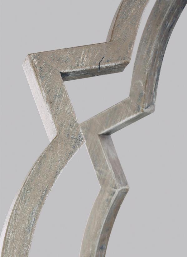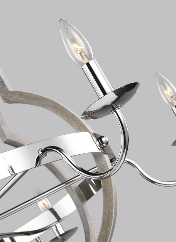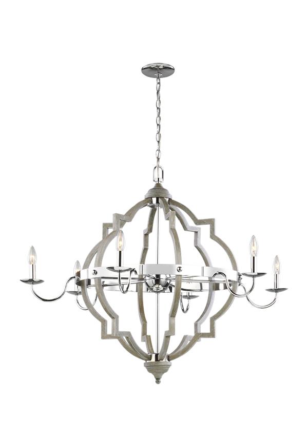 The transitional Socorro lighting series features a classic, barbed Quatrefoil profile - wholly updated by combining a distressed Cerused Oak finish on the decorative silhouette with the rich Stardust finish on the metal bobeches and decorative strapping to create undeniable rustic charm.