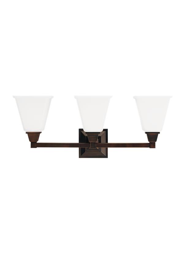 Inspired by the Craftsman style, the Denhelm collection by Sea Gull Lighting has a strong presence with its robust, angular design and substantial, die-cast zinc construction. Available in Brushed Nickel and Burnt Sienna finishes, in addition to a Chrome finish also offered for wall fixtures – all of which feature Etched White glass shades. The assortment includes a one-light mini-pendant, and one-light, two-light, three-light and four-light wall/bath fixtures. Both incandescent lamping and ENERGY STAR-qualified LED lamping are available; all fixtures are California Title 24 compliant.